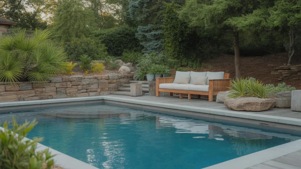 Eco-friendly pool landscaping focuses on sustainability and minimizing environmental impact. By using native plants, which require less water and maintenance, and incorporating eco-friendly materials like natural stone and recycled products, you can create a beautiful and environmentally conscious outdoor space. Sustainable garden designs reduce water usage, promote local biodiversity, and enhance the natural beauty of your pool area. This approach not only lowers your carbon footprint but also creates a peaceful, low-maintenance environment where you can enjoy the outdoors while contributing to a healthier planet.