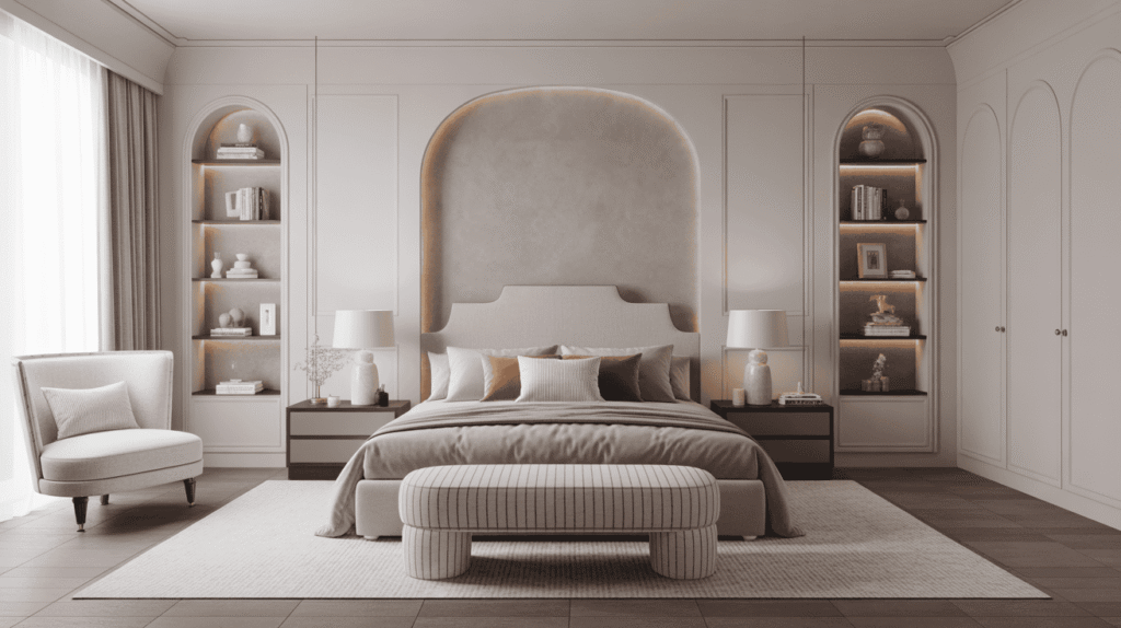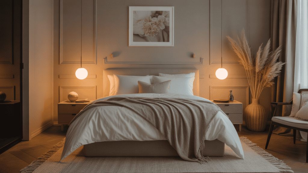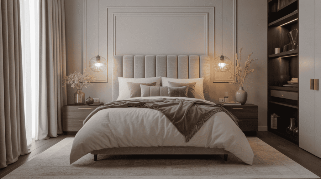 A neutral color palette is the foundation of a classy bedroom. Soft shades like beige, cream, taupe, and light gray create a calm and elegant atmosphere that feels timeless and refined. These colors help the space feel open, balanced, and relaxing, making the bedroom a true retreat.
