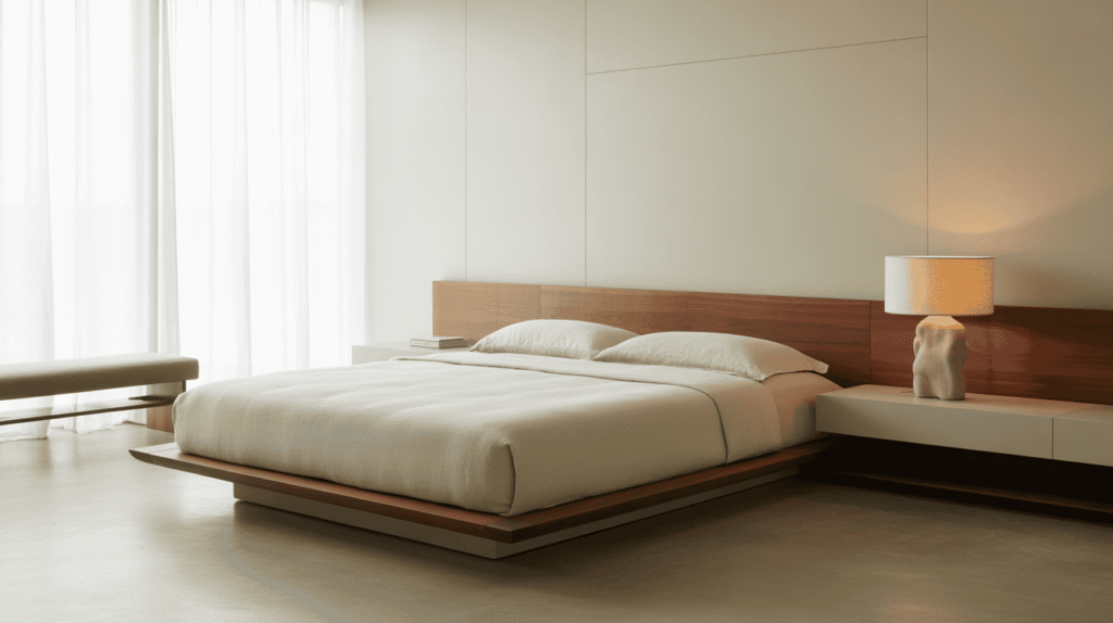 A minimalist approach helps maintain the elegance of a classy bedroom. Clean lines, uncluttered surfaces, and a simple layout create a calm and organized space that feels refined rather than busy. This style focuses on quality over quantity, allowing each piece to stand out.