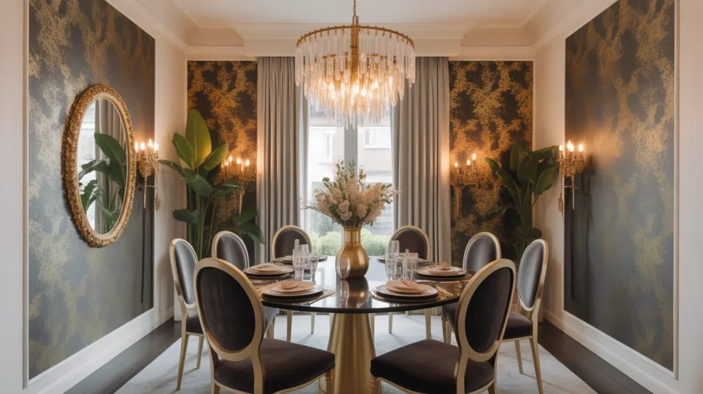 7. Metallic Wallpaper for Glam Dining Room