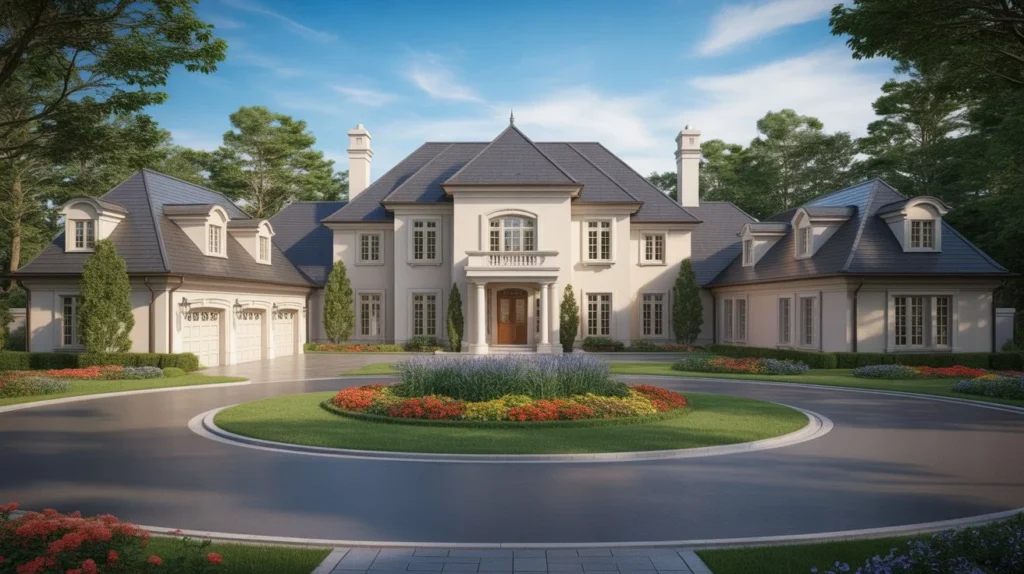 A circular driveway makes a home look elegant, grand, and highly functional. It is ideal for larger front yards and homes with enough space for a looped design. This layout makes driving easier because cars can enter and exit without backing out. It also creates a focal point in the center, which can be used for landscaping, a fountain, or a flower bed. This makes it perfect for decor inspiration and for collections of luxury, stylish ideas.