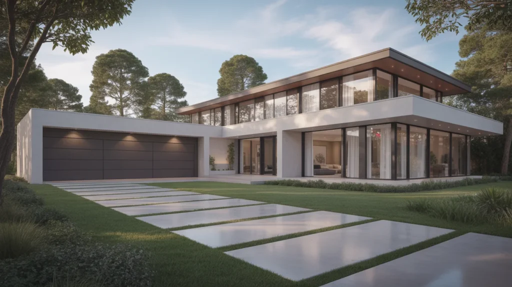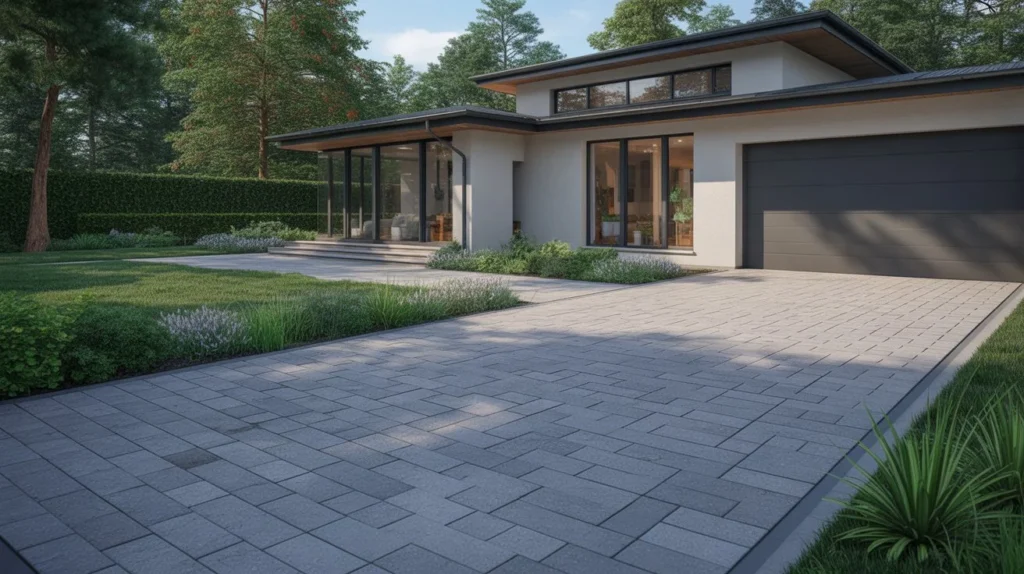 A minimalist driveway focuses on clean shapes, open space, and simple materials. It avoids clutter and keeps the front exterior looking calm and modern. This style is perfect for homes with sharp architecture, neutral colors, and low-maintenance landscaping. It is often featured in decor inspiration because it photographs beautifully and feels fresh. Among stylish ideas, this one is ideal for homeowners who love a clean, trending aesthetic.