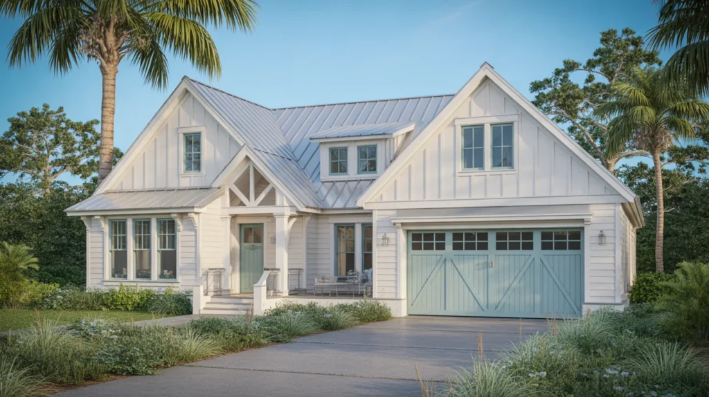 Coastal Garage Doors in Soft Blue, White, or Sand Tones