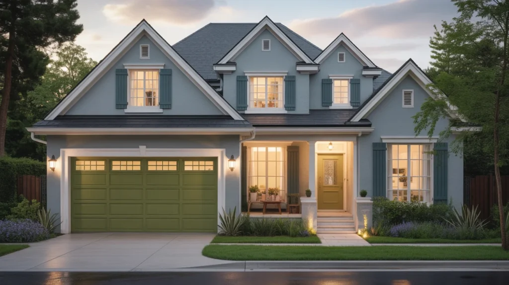 A custom-painted garage door can completely transform a basic exterior. Instead of default white or beige, consider olive green, deep navy, muted terracotta, warm taupe, or smoky gray. A thoughtful color choice can connect your garage door to shutters, trim, the front door, or even landscaping. These garage door design ideas are ideal for homeowners who want stylish ideas that feel personal and memorable. A custom shade can turn a plain facade into strong decor inspiration, especially when the color supports your home’s overall palette.