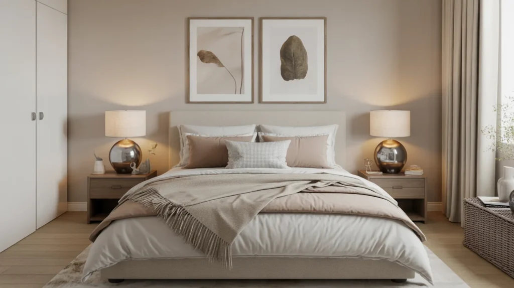 - Choose one calm tone that works with neutral bedding.