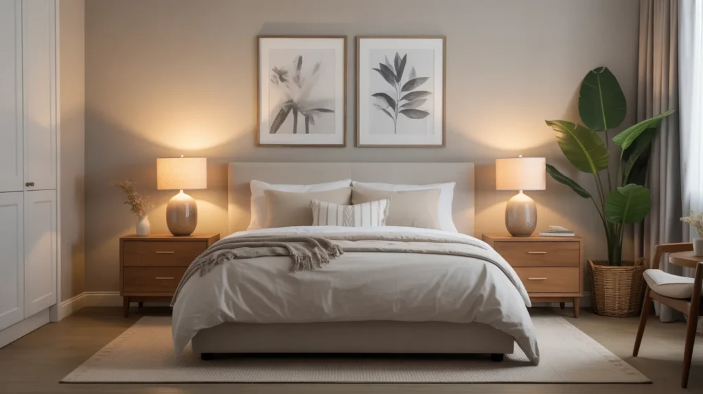 Wall art helps the room feel personal and complete. Choose soft landscapes, abstract prints, line art, or nature photography for a relaxing mood. The goal is to enhance the space without making it feel too busy or too specific. This is one of the easiest, most stylish ways to update a guest room. Art also plays a major role in decor inspiration, helping define the space’s mood and supporting a more intentional, trend-driven aesthetic.