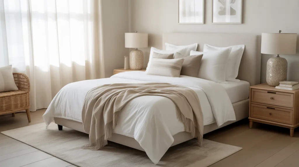 - Mix textures like linen, wood, and woven accents to avoid a flat look.