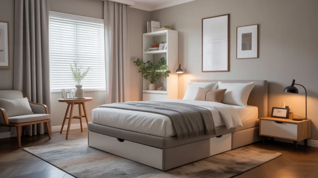 If your guest room is small, choose furniture that does more than one job. A storage bed, a nightstand with drawers, a desk that doubles as a vanity, or an ottoman with hidden storage can help the room stay functional without looking crowded. Small-space room ideas are especially popular because many homes need flexible guest areas. The right furniture can support a stylish idea layout while keeping the room open, useful, and visually calm.