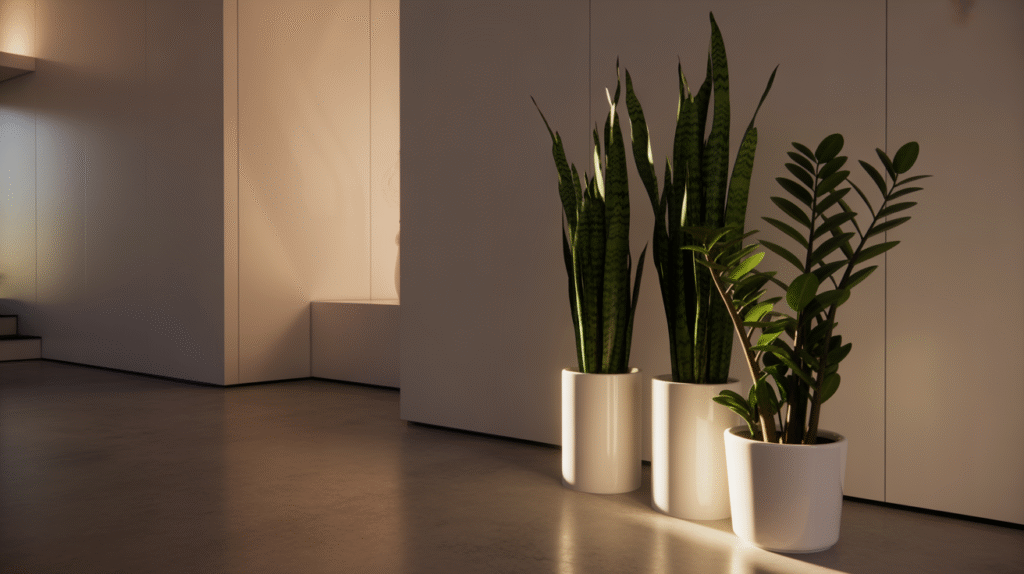 The Snake Plant is one of the best low-light options, known for its upright leaves and exceptional durability. It can survive in shaded areas with very little care. The ZZ Plant is another excellent choice, with its thick, glossy leaves that store water and adapt easily to low-light environments. Pothos also performs well in low light, making it ideal for shelves, desks, and hanging planters.