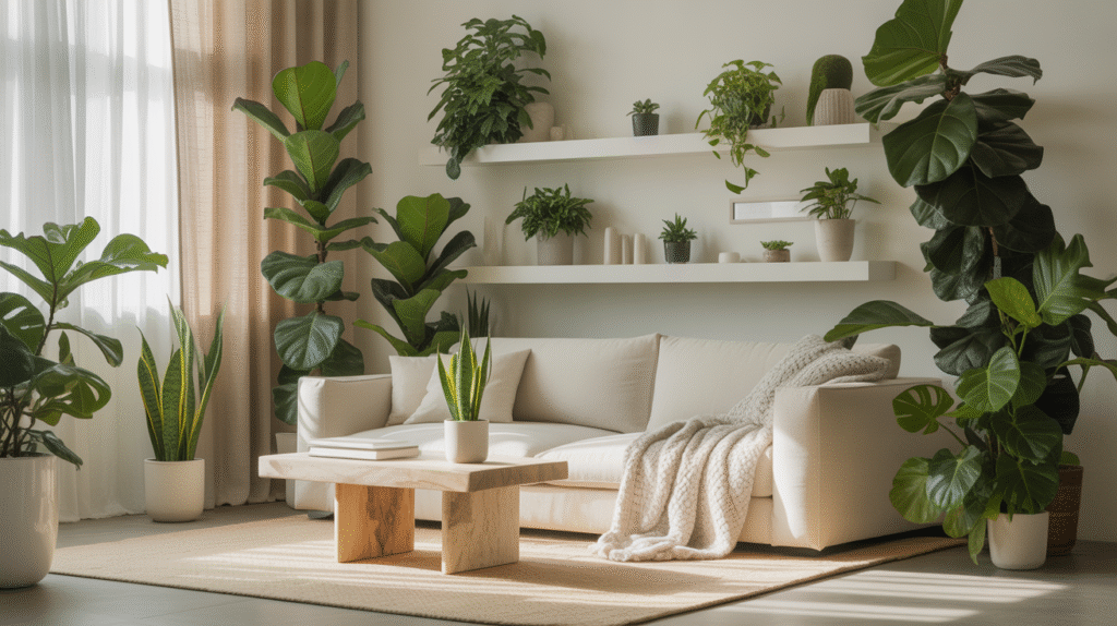 Indoor plants also help tie the room’s décor together. Whether your style is modern, minimalist, or cozy farmhouse, greenery complements every interior theme. With the right placement and plant selection, indoor plants can transform your living room into a fresh, stylish, and relaxing space.