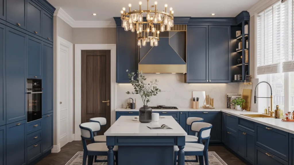 Navy blue cabinets add a rich, bold color that transforms your kitchen into a sophisticated and stylish space. This deep, luxurious hue creates a striking contrast against lighter tones and enhances the overall aesthetic of the room. Ideal for both modern and traditional kitchen designs, navy blue brings a sense of elegance and refinement. It pairs beautifully with gold or brass hardware, white countertops, or wood accents, creating a timeless, high-end look. Navy blue cabinets offer a unique way to elevate your kitchen’s design, adding depth and character to the space.
