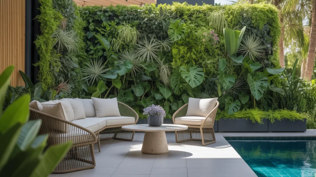 An outdoor living wall, or vertical garden, is a stunning way to blend privacy with beauty. These green walls are made by arranging plants vertically, creating a lush, natural barrier that enhances privacy while adding vibrant greenery to your space. Ideal for small or urban gardens, living walls offer a unique aesthetic that transforms any outdoor area. The plants not only provide seclusion but also improve air quality and create a calming, nature-filled environment. With proper care, a vertical garden becomes a beautiful and eco-friendly solution for privacy, making your outdoor space a true oasis.