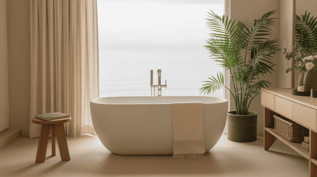 A freestanding tub instantly elevates a bathroom and serves as the centerpiece of a spa-inspired design. Its elegant shape and open placement create a sense of luxury while encouraging relaxation. Unlike built-in tubs, freestanding tubs feel more sculptural and visually calming.