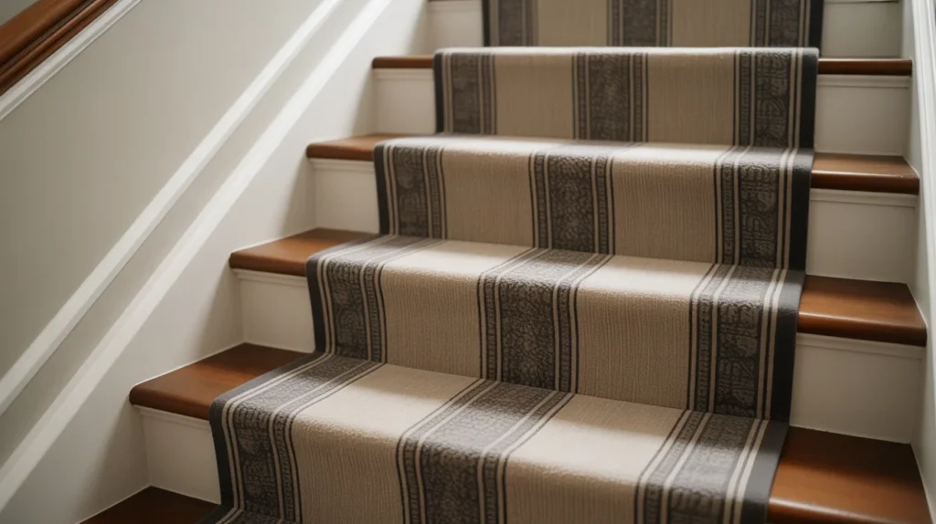 A stair runner adds softness, comfort, and visual rhythm. It is one of the most practical staircase ideas because it improves grip while making the stairs feel more finished. Stripes, subtle geometrics, and textured neutrals are especially popular for stylish ideas that blend with many interior styles. A runner can also make an older staircase look updated without a full renovation. For homes that need warmth and elegance, this is one of the easiest design upgrades.
