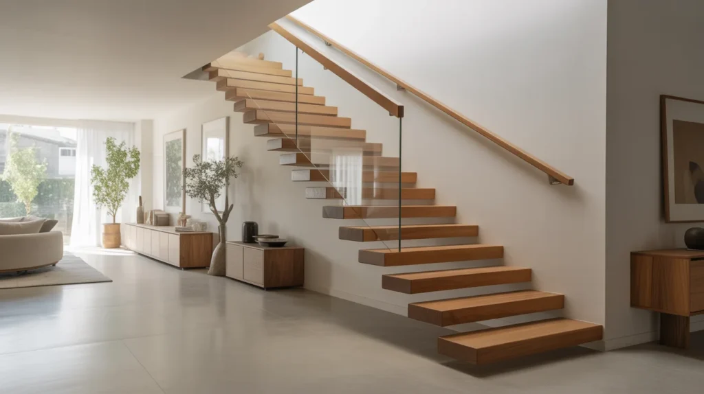 A floating wood staircase instantly creates a light, modern feel. Because the treads appear to “hover,” the whole space looks more open and airy. This is one of the most stylish ideas for homes that need a clean layout without visual heaviness. Warm oak, walnut, or ash tones also add natural texture, making it a favorite for decor inspiration and trending aesthetic boards. It works especially well in open-plan homes, lofts, and minimalist interiors where every detail counts.