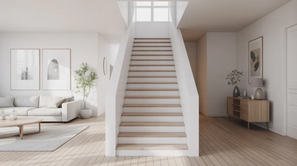 A minimalist white staircase creates a calm, bright, uncluttered look. It works especially well in Scandinavian, contemporary, and modern homes where simplicity is part of the beauty. White stairs reflect light, making narrow spaces feel more expansive. This is one of the best room ideas for creating a fresh canvas that can be styled seasonally or kept very clean. For Pinterest decor inspiration, white staircases are popular because they feel airy, polished, and easy to pair with many accents.