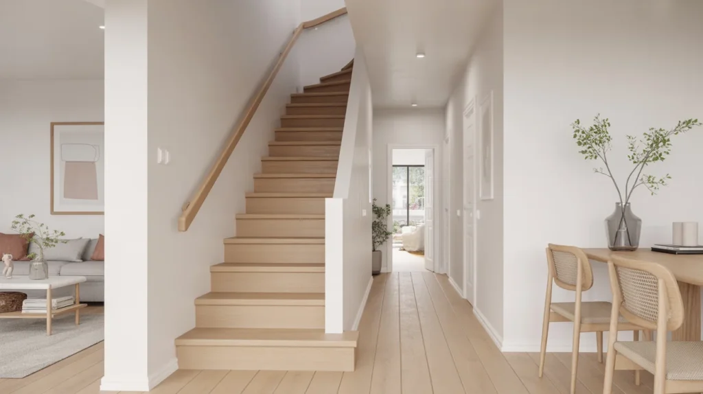 Scandinavian oak stairs focus on simplicity, warmth, and functionality. Light oak tones keep the home feeling bright, while the clean design avoids visual clutter. This is one of the most timeless staircase ideas for modern living because it feels both practical and calming. It works wonderfully in neutral interiors and blends with white walls, black details, and soft textiles. For decor inspiration lovers, this style offers a perfect mix of minimal beauty and everyday comfort.