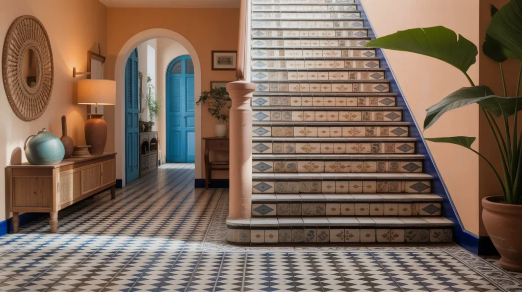 Patterned tile risers bring energy and artistic detail to a staircase. They are especially beautiful in Mediterranean, eclectic, Spanish-style, or colorful homes. Even if the treads remain simple, decorative risers can completely transform the space’s mood. This idea stands out on Pinterest because it adds charm, pattern, and personality in a compact area. It is perfect for homeowners who want a staircase that feels creative without overwhelming the rest of the home.