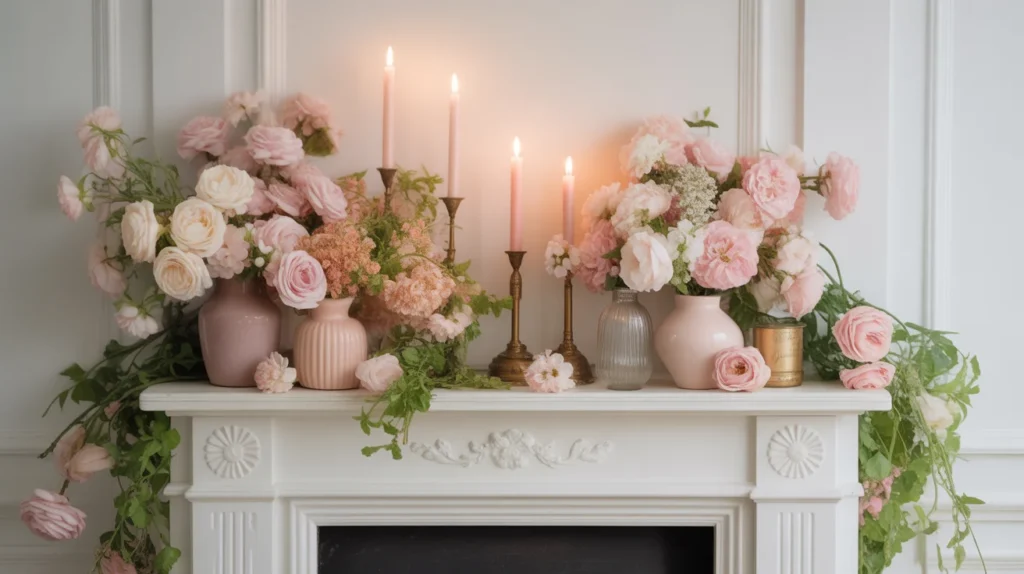 Pastel florals bring a sweet, light, and romantic touch to summer mantel styling. Soft pink, peach, lavender, cream, and pale yellow flowers look delicate and inviting, especially when arranged in vintage-inspired vases. This decor inspiration is perfect for cottage, shabby chic, or feminine room ideas. It adds seasonal beauty without feeling too heavy, and it creates a fresh, photo-ready focal point. Use flowers as the main visual layer and keep the rest of the decor simple for a balanced, trending aesthetic.