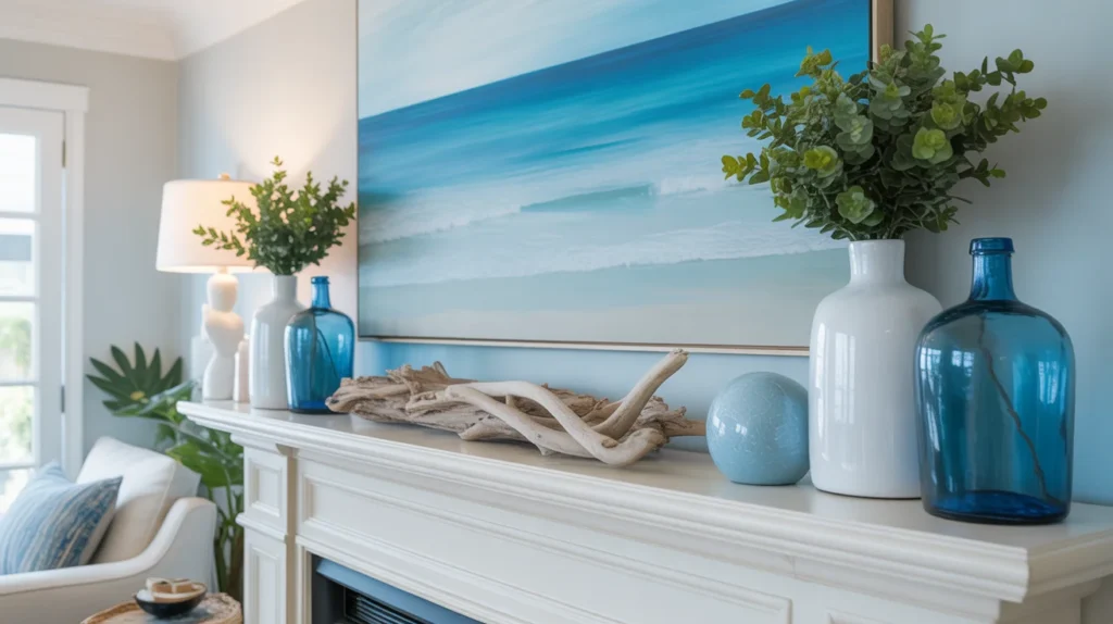 Coastal Blue and White Mantel