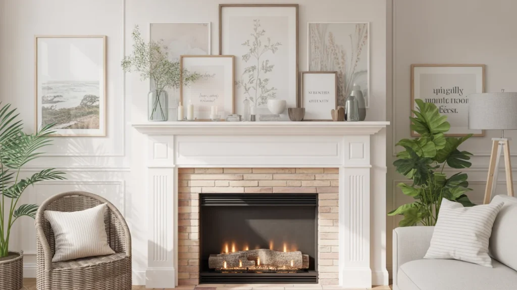 If you like switching decor often, layered prints and small accessories are a flexible way to style your mantel. Use framed summer quotes, botanical sketches, landscape prints, or beach-inspired art, then add a few coordinating objects, such as candles, vases, or bead garlands. This allows you to create a personalized look without buying large statement pieces every season. It is one of the most practical, stylish ideas because it is easy to refresh and photograph beautifully. For decor inspiration that feels creative and budget-friendly, this is a smart choice.
