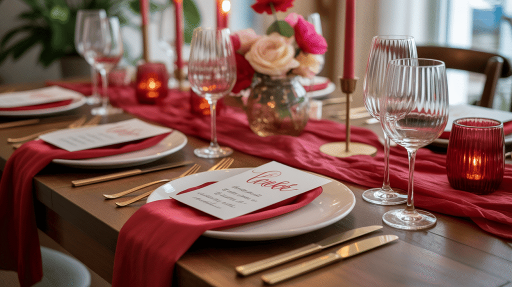 Make your Valentine’s table truly memorable by adding personal touches. Include custom name cards, handwritten love notes, or small themed décor that reflects your relationship. These thoughtful details elevate the setting from beautiful to meaningful, showing care in every element.